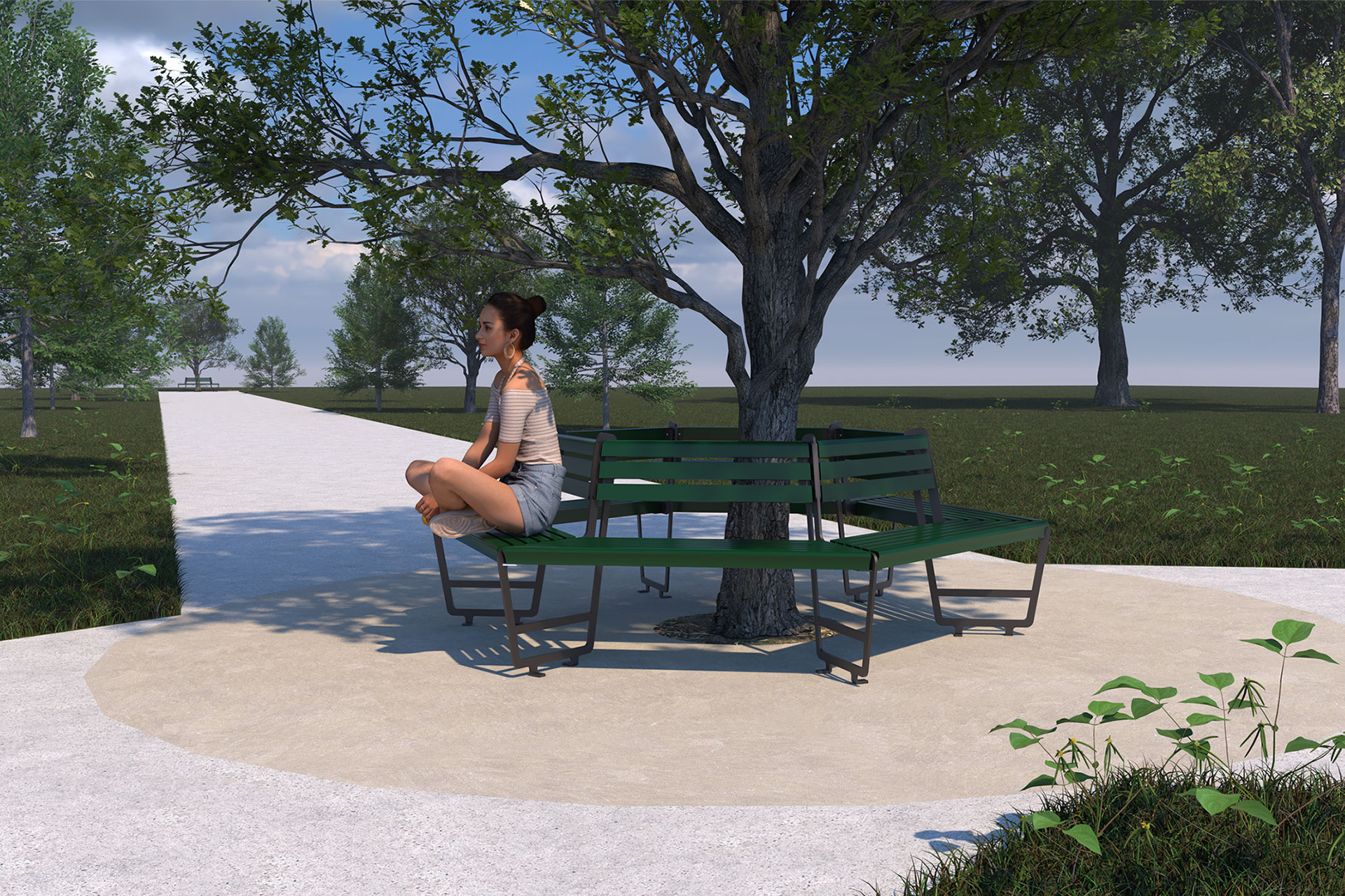 Das Design ist schlicht und zeitlos gehalten, inspiriert von traditionellen Parkbänken. Dank Ihrer eleganten Form fügt sich die Sitzbank harmonisch in verschiedensten Umgebungen ein - von städtischen Plätzen bis hin zu naturnahen Parkanlagen.