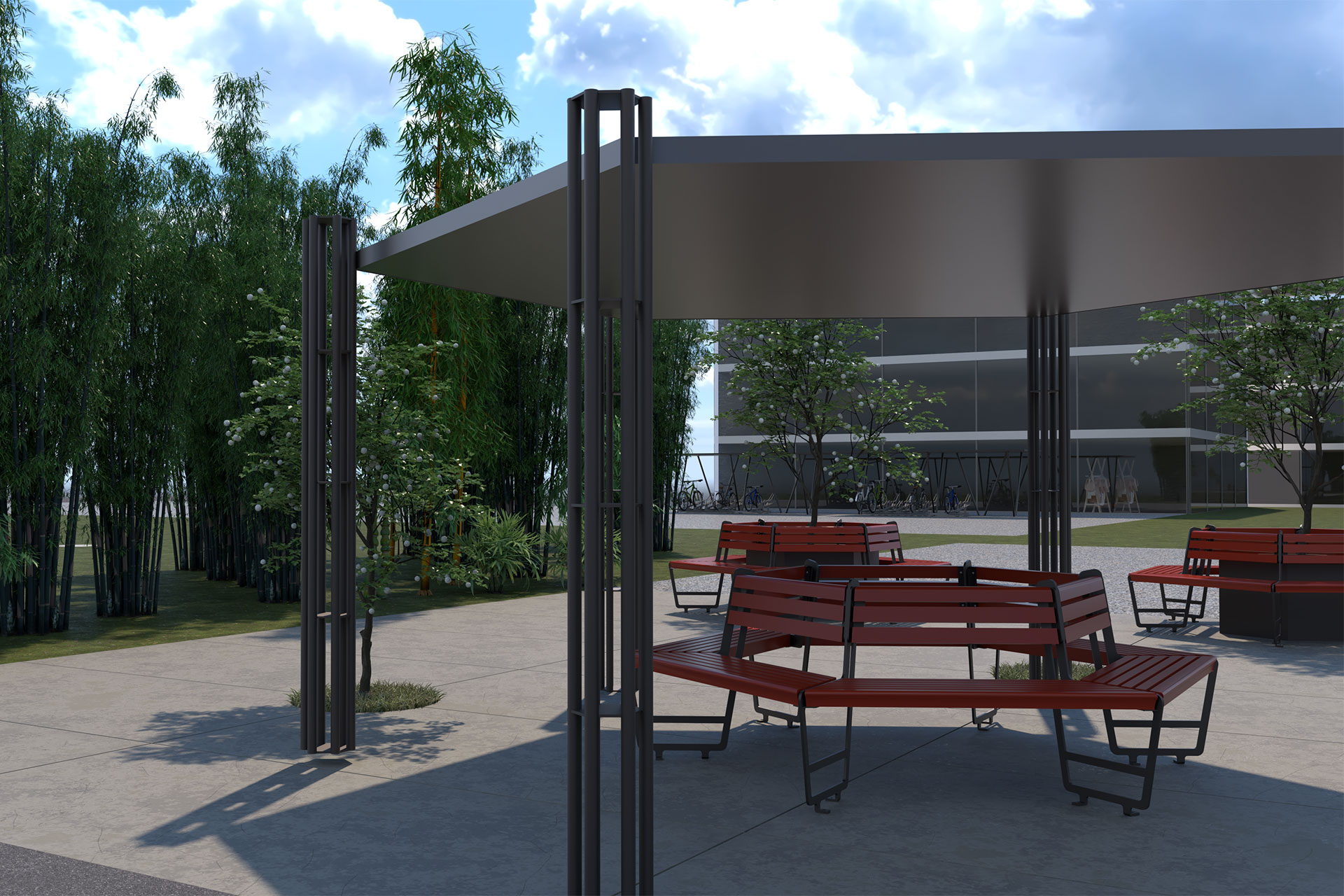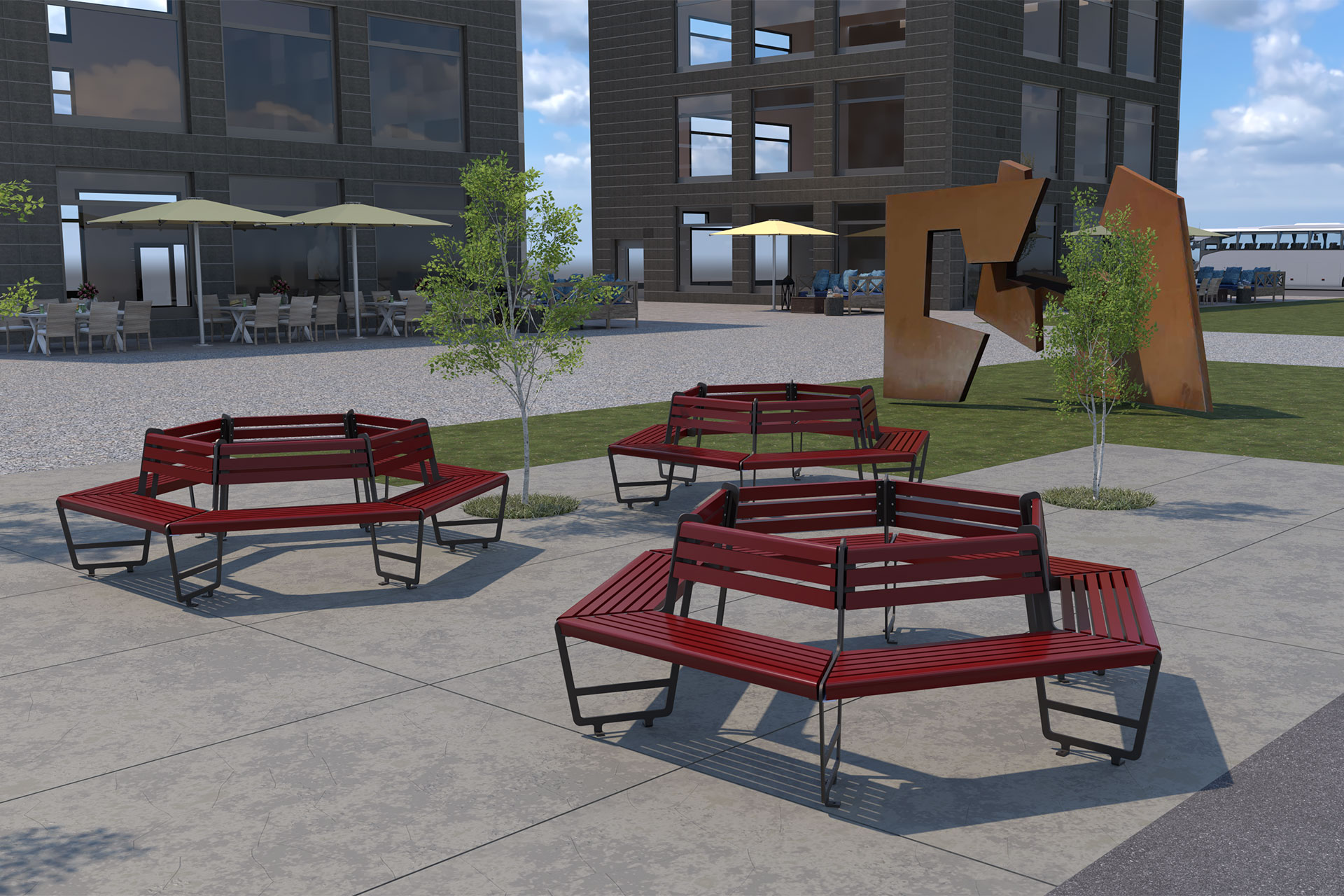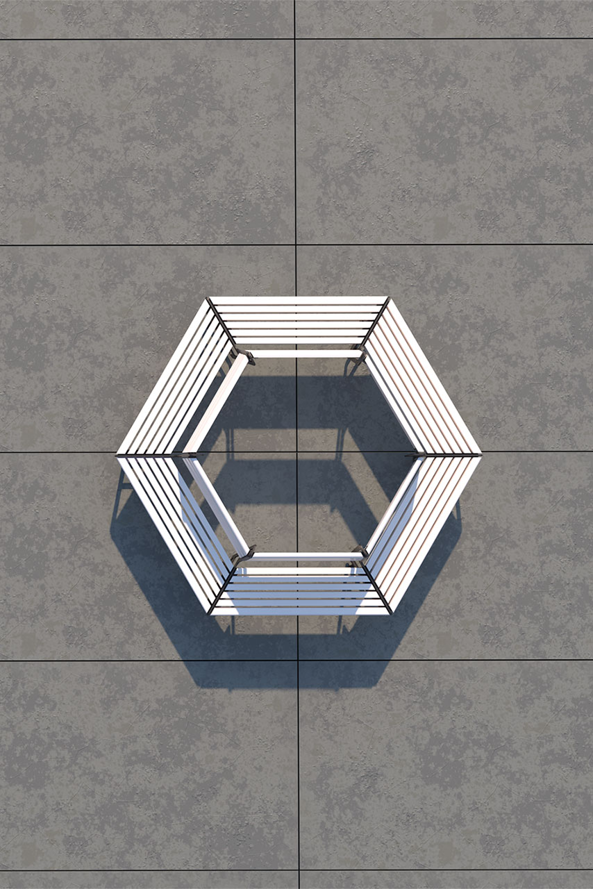 Das Wabebänkli, unsere sechseckige Sitzbank, bietet innovative Möglichkeiten zur Gestaltung öffentlicher Räume und stellt eine praktische Alternative zur klassischen Rundbank dar.